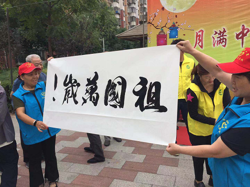 社区志愿者表演的中医保健操、合唱《爱的奉献》,展现了志愿者的风采,表达出志愿者奉献爱的高尚品质。志愿者用行动和歌声,让人人献出一点爱,使世界更美好。书法爱好者现场挥笔泼墨,手写出“祖国万岁”、“中华腾飞”、“与人为善”,为社区和谐营造出温馨氛围,为新中国成立70周年送上祝福。
