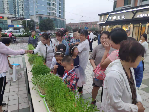 一道绿色的风景线立刻吸引了社区居民的吸引力,大家纷纷驻足观看,向志愿者了解绿植的情况。志愿者展示了豌豆、荞麦、芸豆和萝卜四个品种绿植。居民们对在家里能种植出这么好的植物都表示赞叹,纷纷向志愿者了解这些植物的种植条件、方法与细节等。志愿者耐心为居民解答问题,说明如何在家里种植芽苗菜。志愿者还主动介绍了东风家园绿色志愿团队情况,邀请居民参加志愿团队或者参与志愿活动。