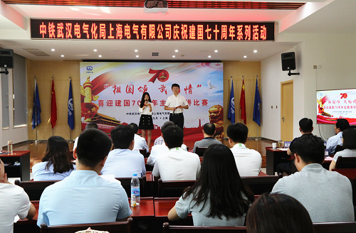 清风网讯(常魁星 通讯员:雒亚琴 孙成辉 都战红)9月10日,中铁武汉电气化局上海电气公司党委举办了“传承百年五四精神 喜迎建国七十华诞”知识竞赛、“祖国颂 武电”情主题演讲比赛和“爱我中华 筑梦电化”职工歌咏比赛。从祖国各地奔赴而来的40余名团员青年用一场青春盛宴庆祝新中国成立70周年。公司党委书记、执行董事张宏平,党委副书记、纪委书记、工会主席徐行军,总工程师、副总经理刘根龙,总会计师吴明出席活动。