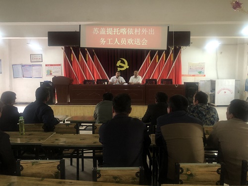 清风网讯(阿克苏路政海事局驻村工作队:许慧慧)为了实现村民增收致富,沙雅县努尔巴克乡苏盖提托喀依村工作队努力搭建就业平台,第一书记积极联系阿克苏迪远装卸有限公司,确定输送15名富余劳动力到库车火车站铁路货场务工。9月18日,苏盖提托喀依村组织召开了外出务工人员欢送会。