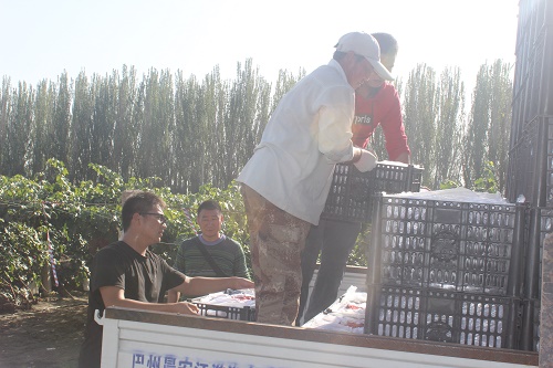 经过一天的时间,在工作队全体队员和家属齐心合力下将4亩地葡萄基本下架装运完成。