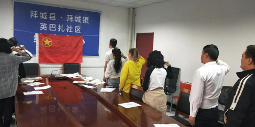清风网讯(英巴扎社区工作队:努尔比艳木)2019年10月是我们伟大祖国成立70周年之际,为隆重庆祝新中国成立70周年,2019年9月18日,自治区团委通过视频统一开展南疆四五地州《我和祖国共成长》为主题的团日活动,会议开至村(社区)一级,拜城镇英巴扎社区团支部也组织辖区全体团干部、团员参加了本次活动。