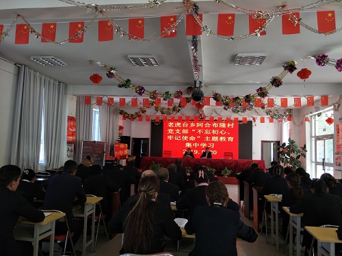 村第一书记、工作队长段少远也带领全体党员一起学习了习近平总书记关于“不忘初心、牢记使命”有关论述,并要求全体党员要做到:一是要学好国家通用语言,学好国语也是爱党爱国的表现;二是以党员身份约束自己,时刻牢记党员身份;三是增强党性意识,遵守党章党规,进一步坚定理想信念;四是深刻反思在今后的工作中如何发挥党员先进模范带头作用。
