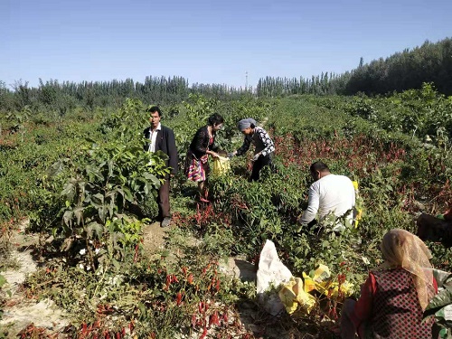 近年来,英艾日克镇吐鲁瓦依村始终立足生态环境资源优势,紧扣精准扶贫战略主题,鼓励扶持群众发展种植特色农业经济作物,把特色辣椒种植产业作为主要产业来抓,拓宽群众增收致富渠道。2019年,辣椒产业已覆盖全村所有贫困户,今年吐鲁瓦依村共种植220亩辣椒,经过前期精心管护,目前辣椒进入采摘期,预计今年辣椒产量可达2万斤,产值约50万元。辣椒种植户人均增收500元。