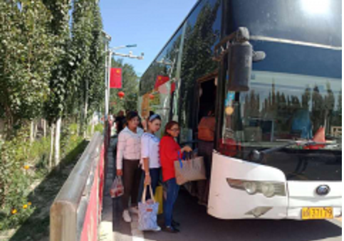 9月21日上午,拜城县铁热克镇辖区内的恰玛古鲁克村、铁热克村、苏杭村三个村的115名村民早早在恰玛古鲁克村委门口集合,整装待发,准备前往库车县哈尼喀塔木新光村从事拾棉花的相关季节性工作。