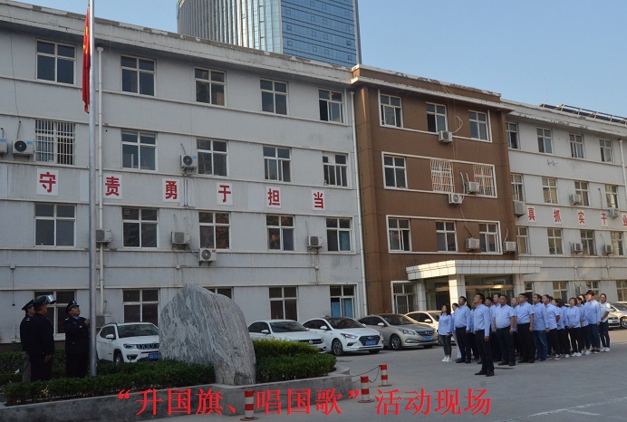 “起来!不愿做奴隶的人们!把我们的血肉,铸成我们新的长城!中华民族到了最危险的时候......”伴随着庄严的《义勇军进行曲》,五星红旗冉冉升起,全体职工面向国旗行注目礼,满怀对祖国的无比忠诚和热爱,高声唱起国歌。