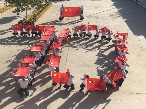 当天一大早,村里的各族群众穿戴整齐,早早来到村委会大院,分别摆出风格迥异的图案,表达对国旗的尊重和对祖国的热爱。为了让合影更有鲜明的特色,村民们高喊“五星红旗,你是我的骄傲!伟大祖国,我为你自豪!”洪亮的声音响彻整个村庄。