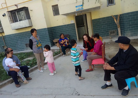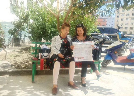 工作队员阿里木尼沙向居民们宣传党的惠民政策,宣讲民族团结一家亲。各民族要团结友爱,和睦相处。只有民族团结了,人民才会安居乐业。只有民族团结了祖国才会更加辉煌。