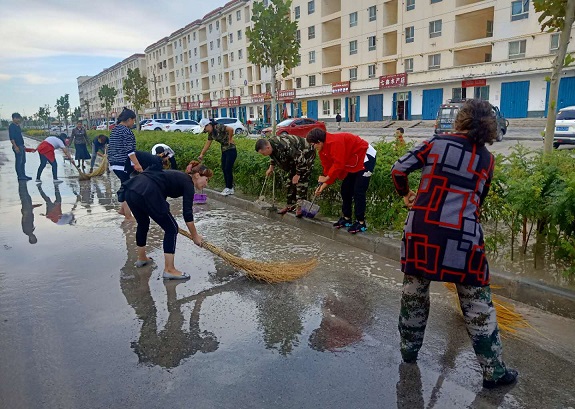 为了居民安全方便出行,努尔巴格社区、工作队组织干部、双联户长、居民清扫社区西面机动车道积水。清扫积水稍作休息的居民马木提感慨地说:“谢谢社区给我这次为大家奉献的机会,我很开心,希望这样的机会可以多一些,我想多为社会做些事。”工作队队员古依努尔•买买提说:“作为一名工作队成员,为群众办实事好事是我的责任,想到他们不用再积水中行驶溅自己一身,我就很高兴,我所做的事情不是无用功就好!”