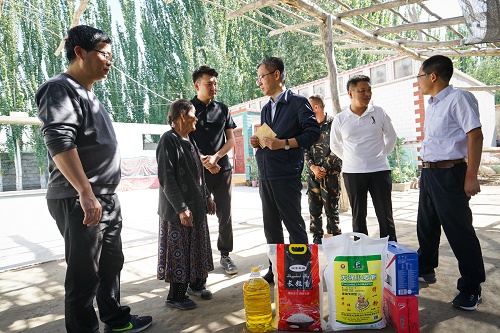 许新康一行先后深入到两户贫困户家中,亲切交谈、嘘寒问暖,详细询问家庭生产生活和家人身体状况,鼓励他们保持乐观健康心态,克服困难,坚定脱贫致富的信心和决心,通过自身的努力和相关扶贫政策的扶持,过上幸福生活。同时与新疆农业大学驻索克满村“访惠聚”工作队队员交流,了解当前脱贫攻坚及群众服务工作开展情况,要求结合“不忘初心、牢记使命”主题教育学习,巩固脱贫攻坚成果。