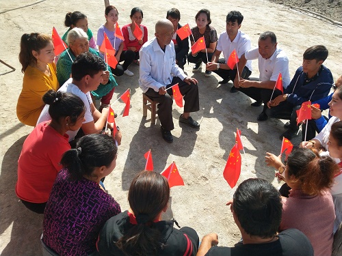 9月26日,县农业农村局驻耶克先拜巴扎村工作队组织村里年轻人到拜克热爷爷家,听过去的故事,一起庆祝我国建70周年。