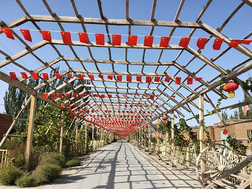 通过悬挂五星红旗、彩旗、灯笼等多种形式,不但全村营造欢乐、祥和、喜庆的节日氛围,而且提高全体村民对国家、国旗的认识,激发他们对祖国、家乡的情感,倡导人人自觉热爱国家,为国家的团结统一履行应尽的责任,让他们深刻认识到只有国家安定,我们的一切才有保障,只有实现社会稳定和长治久安,新疆各族人民才能有美好的未来。