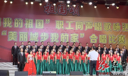 清风网邵阳讯(通讯员:杨湘平) 9月24日,由中共城步苗族自治县委宣传部、县总工会、县文化旅游广电体育局共同主办的庆祝新中国成立七十周年“祖国颂”全省第二届群众大合唱比赛城步选拔赛暨“美丽城步我的家”全县合唱比赛、“我和我的祖国”城步职工同声唱歌咏活动在县行政中心大会场开幕唱响。