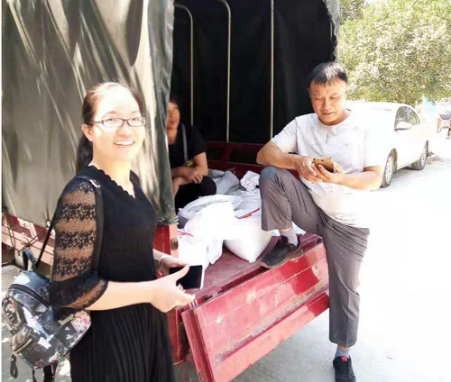 这是胡玉兰老师和走访对象资江村的杨进武。杨进武是资江村的种粮大户,今年在劳动中意外双腿受伤,无法进行田间管理,水稻大面积减产。本来没有施过化肥和农药的大米市场最受欢迎,但由于宣传工作无法到位,所以价低而销售艰难。胡老师向学校各方推介,一次就在学校销售二千多公斤,而且后续的订单更多。杨进武同志说:这是实实在在的帮扶,是最令人感动的帮扶。