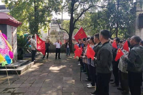 演出结束后,三家党支部还组织参观了黄平县革命历史陈列馆,旧州镇烈士墓。在烈士墓前,握紧拳头,举起右手,从温了入党誓词,并在“且兰古镇”旅游景点旧州 “清雲”路,一同挥舞着手中的国旗合影留念。