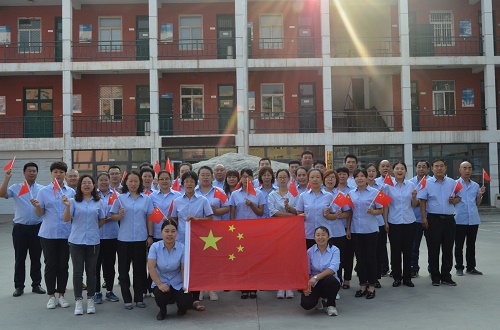 清风网讯(河北建工集团省四建:李佳)9月30日上午,河北建工集团省四建四分公司机关院内,早已摆好“70”队型、着装统一的职工们都在耐心等待着那一庄严的时刻,每个人手中都持有一面国旗,成为一道亮丽的风景。
