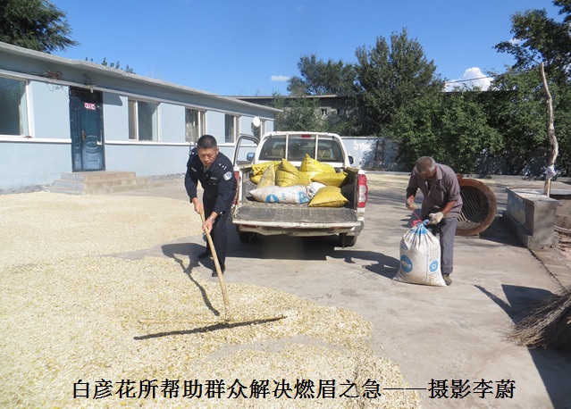 9月23日下午,刘二宝将作物运送至派出所旁的院落,曹利军带领民警及护路队员帮助其进行晾晒。五千多斤的作物装了满满两车,4个人劳作了2个多小时,才成功把作物晾晒完毕,烈日炎炎,大颗大颗的汗珠从民警们的脸上滴落,但看到满院金灿灿的西葫芦籽和刘二宝脸上愈来愈多的笑容,谁有没有喊累喊苦。干完活儿后,刘二宝握着曹利军的手连声道谢,曹利军直说:“咱们警民是一家人,只要有困难,我们一定尽力帮助!”