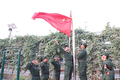 护旗手们精神抖擞、迈着整齐有力的步伐走向国旗台,升旗手娴熟的将五星红旗固定在国旗杆上。伴随着国歌声,鲜艳的五星红旗缓缓升起。“起来,不愿做奴隶的人……”站在队列最前排的少先队员们,认真行着少先队礼,高声唱着《国歌》。干部群众对五星红旗的崇敬、对伟大祖国的无限热爱展现在升旗仪式的每一个细节,将发自内心的真情和行动投入到整个升旗仪式的全过程。