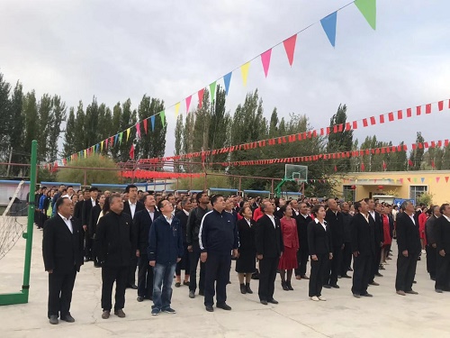 第一书记库尔班.艾则孜说“在新中国成立70周年之际,举行升旗仪式,祝福祖国,赞美祖国,非常有意义,升旗仪式神圣而庄严,是对村民进行爱国主义教育的良好契机。”