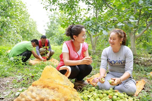 工作队队员温且姆·艾买提在走访入户中得知2组村民热汗古丽·吾许尔还有6亩地的核桃未采摘,缺少劳动力面临采摘的难题。