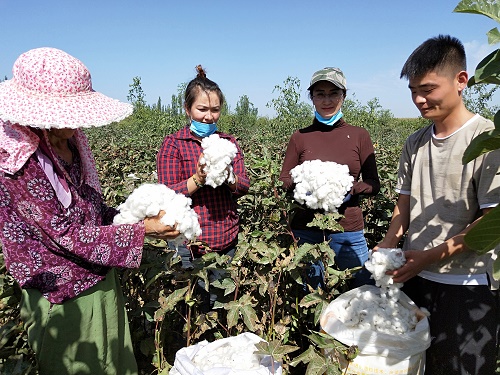 玉斯屯克巴格托格拉克村的古丽·如苏力和姐姐吐尼沙汗已经年过半百,长期繁重的农活已近压垮了她们的身体。在漫长的农活中古丽·如苏力得了慢性病,而她的姐姐在之前的劳作中也落下了残疾。全家劳动能力近乎丧失,她们却没有对生活失去希望。为了脱贫,她们姐妹承包了本村村民的棉花地来拾棉花挣钱。驻村工作队了解到这个情况后,于9月27日和下沉干部们一起去到她家拾棉花。烈日当空下队员们干了不一会就汗流浃背,但是却没有人停下来,都在默默的坚持着。为了将棉花早日摘完,队员们中午也都没有休息继续摘棉花。工作队员的辛苦没有白费,持续两天的劳动结束,这几亩地的棉花终于摘完了。参加拾棉花的工作队队员说:人穷志不穷,她家肯定会过上好日子的!