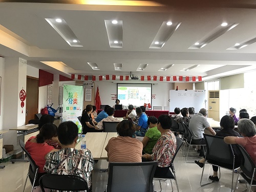 活动通过PPT的形式向前来参加讲座的居民进行了垃圾分类知识的讲解,并通过图文并茂的形式向大家展示了直观易懂的垃圾分类方法。讲解后,开展垃圾模拟分类游戏,设置四个模拟分类垃圾桶,以及各类垃圾的图片若干,让居民进行分类,通过通俗易懂的小活动,让每一位在场的居民及时掌握、消化所学到的垃圾分类知识。