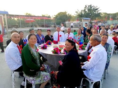 今年73岁的金婚老人艾买提尼亚孜·阿西木激动地说:“我和老伴儿结婚52年了,我们没有照过结婚照,也没有举办过婚礼,没想到今天工作队弥补了我和老伴一生的遗憾。感谢党的好政策,感谢这些党的好干部!我们要老有所为,继续维持优良家风,给年轻人做榜样!”