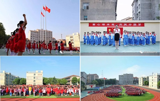 上午八点,全校三千余名师生汇集在改造一新的运动场上举行“童心颂未来,共筑中国梦”的升旗仪式。仪式开始,全校师生齐颂《少年中国说》,铿锵有力的声音久久回荡在荣城上空。在雄壮嘹亮的国歌声中,荷花师生沐浴着金色的阳光,仰望五星红旗冉冉升起,无比激动。