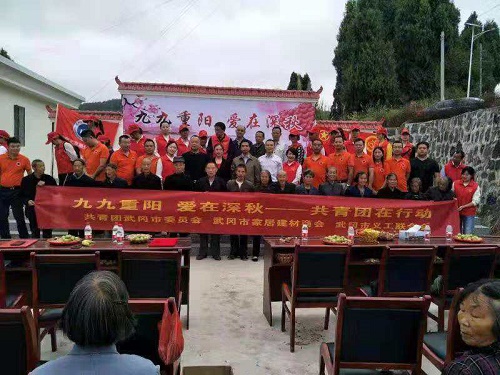 清风网邵阳讯(通讯员:武刚仁 杨珍珍 申孟君 刘和平) 岁岁重阳,今又重阳。为弘扬中华民族敬老爱老传统美德,10月7日上午,共青团武冈市委携手武冈市家居建材商会、义工联合会在大甸镇古凼村开展了以“九九重阳,爱在深秋”为主题的志愿服务活动,为老人们送去节日的祝福。欢声笑语热闹了整个村庄,更温暖着老人们的心。