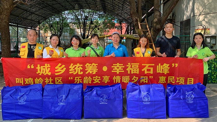 欣赏完精彩的表演后,社区网格员、种子社工与志愿者们分组前往社区五名失能老人家中,为他们送去慰问物资与来自社区与社会的关怀问候——“乐龄安享·情暖夕阳”项目启动后的第一次入户走访,是项目在叫鸡岭社区迈出的第一步,也是以专业服务打造优质社区的新起点。