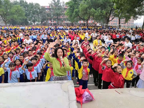 清风网邵阳讯(通讯员:夏万里 胡远梅) 为弘扬爱国主义和民族团结精神,构建和谐校园,丰富校园文化生活,10月11日上午,武冈市法相岩小学3000多名师生在学校大操场举行了隆重的“十.一三”庆祝活动,嘹亮的歌声中传递出孩子们对祖国的热爱。