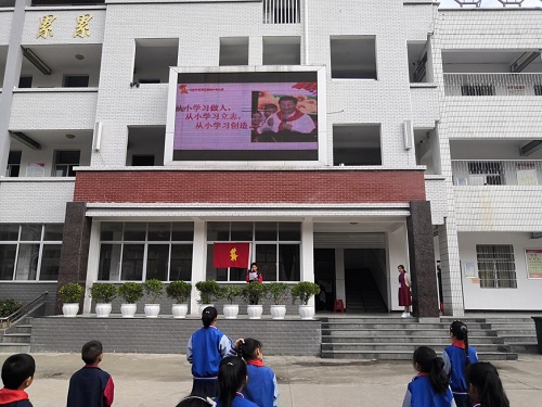 优秀少先队员代表郭春旺带国旗下讲话,讲述习爷爷教导少先队员的话,要从小学习做人,从小学习立志,从小学习创造。一句句话语萦绕耳畔,一句句教诲永记在心。