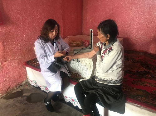 10月14日,拜城县妇幼保健院党支部3名医生带领村医对辖区内已纳入慢性病管理的68名患者开展慢性病随访管理工作,全面掌握辖区慢性病患者病情发展和治疗情况,让群众在家门口就能够得到高效便捷的医疗服务。在访视过程中,随访医生对慢性病者的血压、血糖进行测量、对比评估,参照检查结果对病情发生变化的患者今后一段时间的用药量进行了调整。同时医护人员还对患者和家庭成员进行了健康知识宣教,对“三高”疾病的防治、如何保持健康生活方式等做了深入浅出的宣教,让群众树立健康文明的生活习惯,增强自我保健防治意识。高血压患者祖丽皮亚·亚生激动地拉着随访医生的手说:“我今年72岁了,患有高血压20多年,现在身体也不太好,自己去医院定期检查、就医很不方便,目前开展的慢性病随访服务,可以让我足不出户就可以享受免费的医疗与服务,给我们检查身体,真是太方便了。感谢你们!感谢党的好政策!”