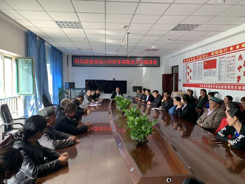 清风网讯(阿瓦提县市场监督管理局:单宏达 边科)10月14日下午,阿瓦提县市场监督管理局召开食品小作坊专项整治工作推进会,食品科科长边科对全县50家食品小作坊业主开展第二期培训,在前期培训检查的基础上,继续就生产过程中存在的问题进行再培训,提高小作坊生产管理能力,推进会围绕小作坊布局、设施、规范加工行为、做好台账、产品送检、标识标签、加强管理等方面展开。