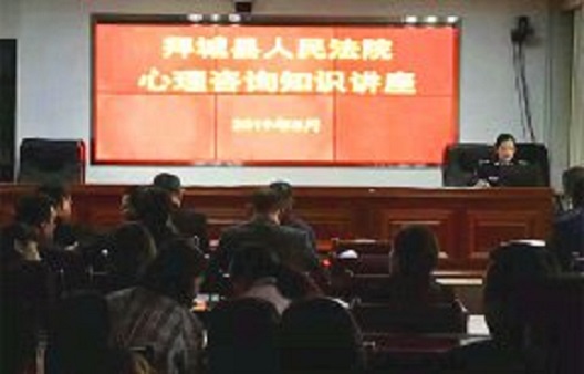 日前,拜城县法院为进一步加强法院队伍建设,积极推进干警心理健康服务,激发大家干事创业的工作积极性,特邀心理辅导老师为该院干警作了专题心理健康辅导讲座,受到法官们的热烈欢迎。