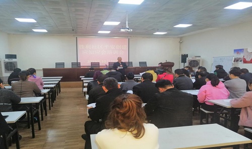 清风网讯(通讯员:卡哈尔曼·肉孜)为加拜城县拜城镇大胜利社区平安创建工作的宣传教育力度,进一步营造平安和谐的社区氛围,扎实开展平安创建宣传活动。2019年10月16日,拜城县拜城镇胜利社区“访惠聚”工作队和社区“两委”班子联合共同召开了关于平安创建宣传应知应会培训会,胜利社区辖区的商铺负责人及营业人员70余人此次培训会参加。胜利社区与此同时接连几天深入到各小区、居民家中、街道商铺开展了平安创建入户宣传活动。