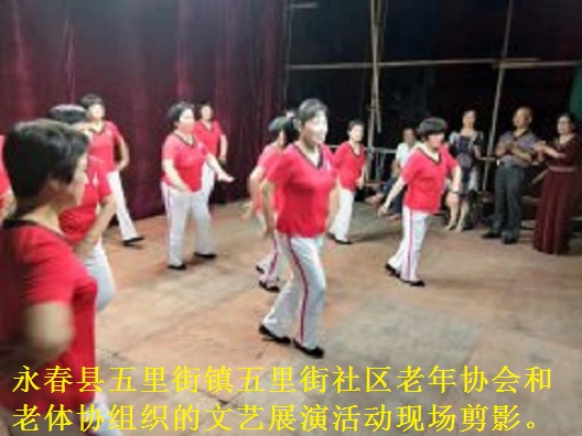 清风网福建讯(通讯员 颜建全)10月17日晚上,福建省永春县五里街镇五里街社区老年协会、老体协组织了一场文艺展演活动,社区的老年朋友们欢聚一堂,通过歌舞、器乐演奏等多种文艺形式,讴歌伟大祖国,赞美幸福生活,展示老年朋友新时代的新面貌、新风采。