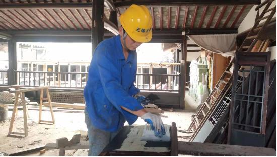 10月17日,记者在现场看到,三让堂已经搭起脚手架,屋面青瓦正在更换,屋檐下的木椽正在打底子,准备油漆;修复工程正在紧张进行。据项目负责人介绍,本着修旧如旧原则,施工人员正在对损毁的木结构沿梁、立柱进行更换。对室内受潮起鼓的墙面,采取老工艺办法,并采取防腐、防白蚁措施保护古建筑。