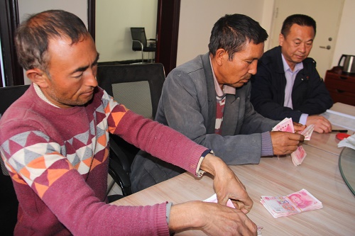 10月18日在乌鲁木齐海关驻恰克其村工作队阿克苏润农生物科技有限公司为本村沙依开荒地务工的四名贫困户发放发工资四名贫困户共计64888元。