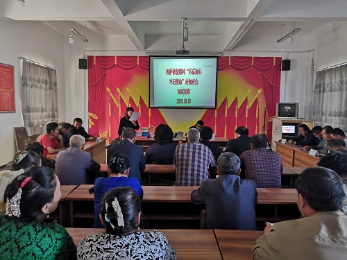 清风网讯(阿瓦提县发改委驻村工作队:董文勇)10月18日,西萨依拉特村工作队牵头,村委会配合组织全体党员干部和村民代表开展了“不忘初心 牢记使命”应知应会知识竞赛,本次比赛分为4个小组,每个小组3人,共计12人参赛,旁观者参与人员16人,评委组工作队成员和村干部成员担任,合计28人.