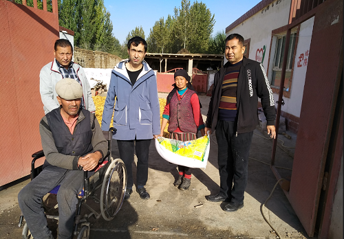 清风网讯(拜城县林草局驻村工作队:孟玉秀 王群)在冬季来临之前,为解决贫困户的生活困难,根据摸底核实,亚吐尔乡欧勒旁村驻村工作队于10月19日为7户贫困家庭送去了价值700元的面粉、大米,解决了贫困户生活困难的急需用品。在走访过程中第一书记、工作队队长王群都详细的了解他们的生产生活情况,嘱咐贫困家庭有什么困难向工作队反映,党和政府一定会及时解决他们的困难和问题。贫困户表示感谢党和政府的关心和帮助,我们一定会努力摆脱贫困,为打赢脱贫攻坚工作助力。