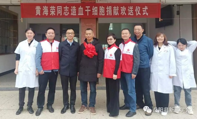 清风网讯 (刘孟奇 许萍)10月17日清晨,黄沙街镇政府、卫生院及岳阳县红十字会举行了一场欢送仪式。在黄沙街镇卫生院内众人目送着一辆承载着生命火种的车远去,坐在车内的是黄海荣同志及其家人。此行黄海荣同志将接受第三次皮下注射动员剂,于18日正式采集造血干细胞以救助一名素不相识的白血病患者。