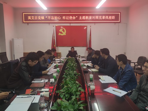 2019年10月19日,英艾日克镇党委按照县委有关部署,在镇党委会议室召开英艾日克镇“不忘初心、牢记使命”主题教育对照党章找差距专题会议,会上镇党委书记张勇峰同志对《党章》、《关于新形势下党内政治生活的若干准则》、《中国共产党纪律处分条例》进行领学,使党的理论贯穿整个学习过程,每个班子成员结合自身工作实际谈认识找差距,开展批评与自我批评。