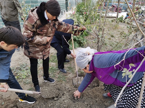 撸起袖子干得满头大汗的退休老党员艾海提·塔瓦库力休息时说:“早上锻炼身体时,看着大家种下一株株绿色希望,以实际行动贯彻落实生态环境理念,营造绿色环境,建设美好家园,我很振奋,忍不住加入其中,也想为小区建设贡献自己的一份力量。”