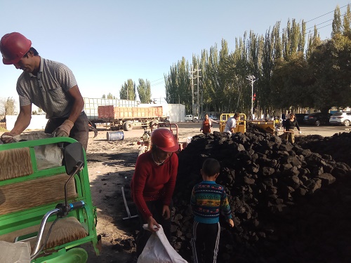 2019年10月21日, 沙雅县人民医院驻红旗镇塔勒克村“访惠聚”工作队、塔勒克村委会秉承“决不让一个困难家庭掉队、全面打赢脱贫攻坚战”的宗旨,对辖区64户低保户、边缘户、贫困户发放了64吨“暖心”燃煤帮助他们能够安心过冬。