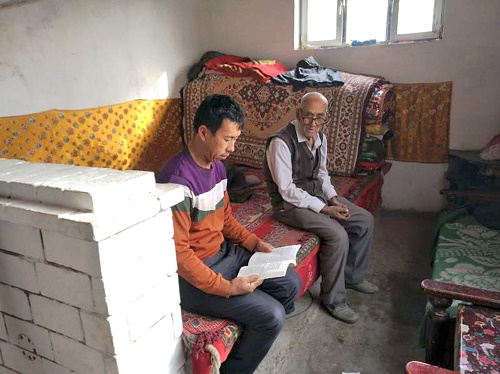 木尼亚孜·吐尼亚孜激动地说:“感谢党组织的关心,没有忘记我们这样的老党员、“四老人员”,开展这样的送学上门太好了,我虽然体弱多病行动不便,但是还能看、还能听,还能学习,思想不能老化和退步。”