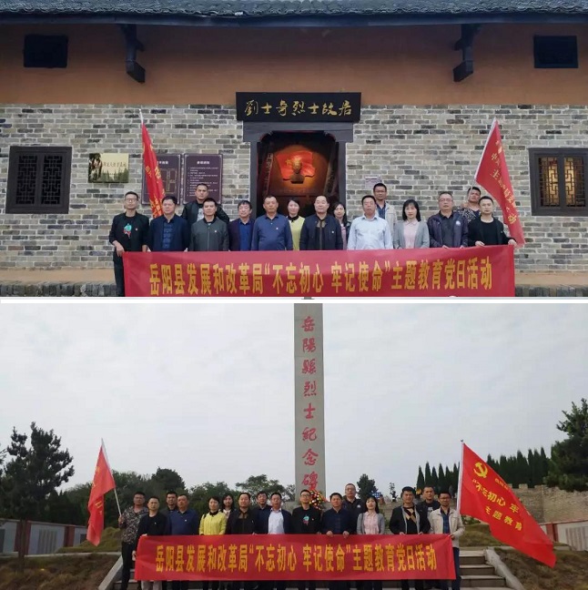 清风网讯(李毅 许萍)不久前,岳阳县发改局机关党支部为进一步推进“不忘初心、牢记使命”主题教育持续深入开展,组织机关全体党员来到岳阳县烈士陵园和刘士奇烈士故居开展“不忘初心、牢记使命,学习先烈、砥砺前行”主题党日活动。