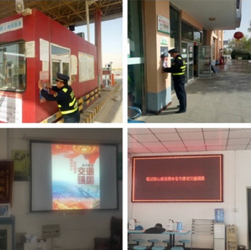 三、加大《纲要》的社会宣传力度。通过滚动播刚LED充分宣传“纲要”内容,通过电子屏幕播放海报,以及在办公场所,收费站,服务区等显著位置广泛宣传,形成了浓厚的宣传舆论氛围,做到了交通强国“处处见、人人见、天天见”,得到了显著的成效。