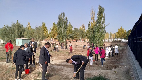 活动开始后,党员们拿起自备的坎土曼和铁锹开始挖树坑植树。大家相互配合,有的挥锹铲土,有的扶树填土,有的培土浇水,有的修枝刷漆,忙得不亦乐乎。经过近大半天的劳动,900余棵核桃、苹果、桃子、梨子、杏子等果树在文明社区里“安家落户”,在金秋十月的暖阳里休息整顿,等待来年春天的到来。