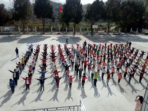 如今,上午课间活动时间,音乐声响起在小学操场上,学生在欢快的节奏中,在律动的音乐中,露出灿烂阳光的笑脸,劲动的武姿震动了整个校园,每天20分钟的课间操成了学校一道亮丽的风景线!